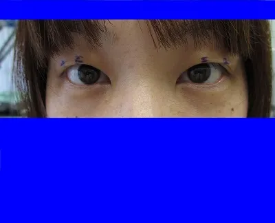 強い眼瞼下垂症や目立った左右差がないケースでしたので、埋没法で重瞼線を作成しました。