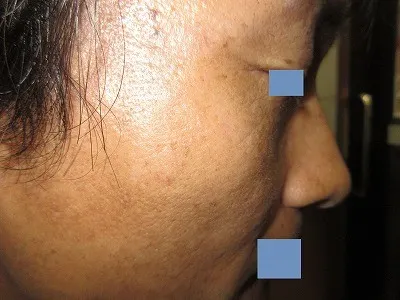 日焼けしている人は、レーザー照射による炎症後の色素沈着が残りやすいので、出力設定を変更する必要があります。