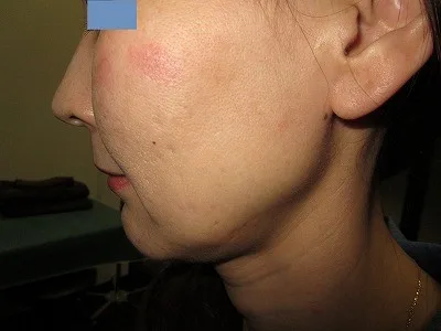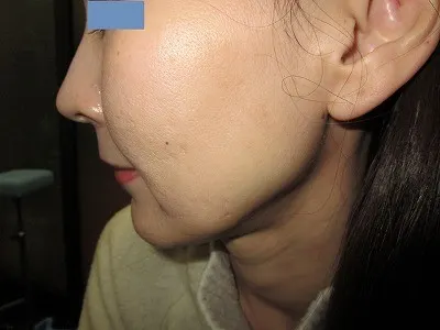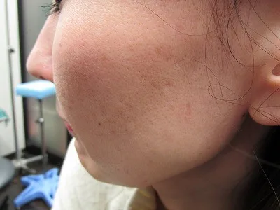 左頬の老人性色素斑(シミ)です。
