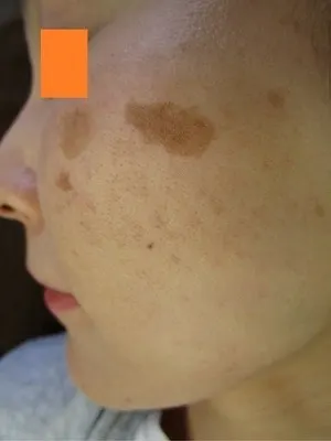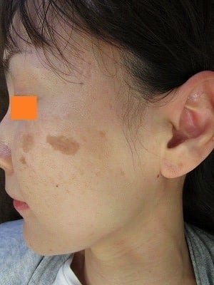 このように境界明瞭で、比較的色調均一なシミは、Qスイッチレーザーによく反応します。