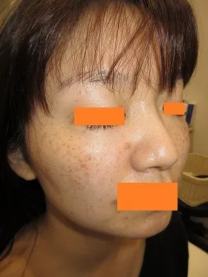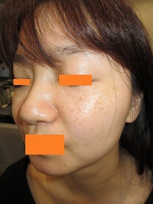 遺伝的な背景があるとは言え、組織学的には老化によるシミと同じですので、Qスイッチレーザーによるシミ打ちが有効です。
