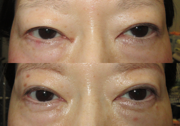 | 施術内容 | メスにて眉毛下の贅皮を切除し、タルミを減らします。 |